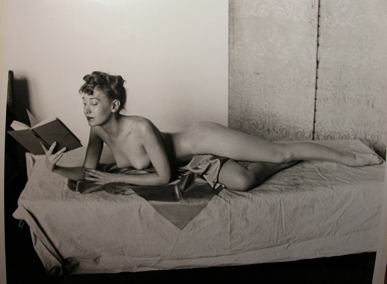 The Fairest Flower is a deliriously sexy rare surviving nude pin-up pastel by Zoe Mozert created for The Brown & Bigelow Calendar Company. In 1941, after a prolific decade long career as a leading pulp and movie magazine cover illustrator, Zoe Mozert signed on as a staff artist with Brown & Bigelow where she quickly established herself as one of the finest pin up artists in America. Confident and attractive, Mozert often used herself as her own model, and The Fairest Flower is in fact a self portrait of sorts. The artist’s uninhibited nature, along with her quick tongue and biting sarcastic wit, endeared her to many and alienated her from many more, but even those who found her off-putting found themselves awed by her beauty and talent. This pastel is by all means one of the artist’s defining and most important works, a young nude captured in light and shadow against a cobalt blue dramatic setting, a fresh to the market Arizona estate find. The art is handsomely framed under glass in a period, carved limed wood frame in a pristine state of original conservation.