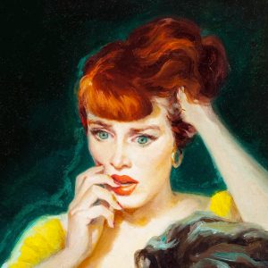 The 1961 cover painting for the Beacon Book title Wild Body was created by an as-of-yet unidentified American artist. This novel by Manning Clay first appeared in digest form in 1953, our gallery also has that earlier cover painting available for sale. This lurid sleaze pulp fiction offering promises a wild ride — with more […]